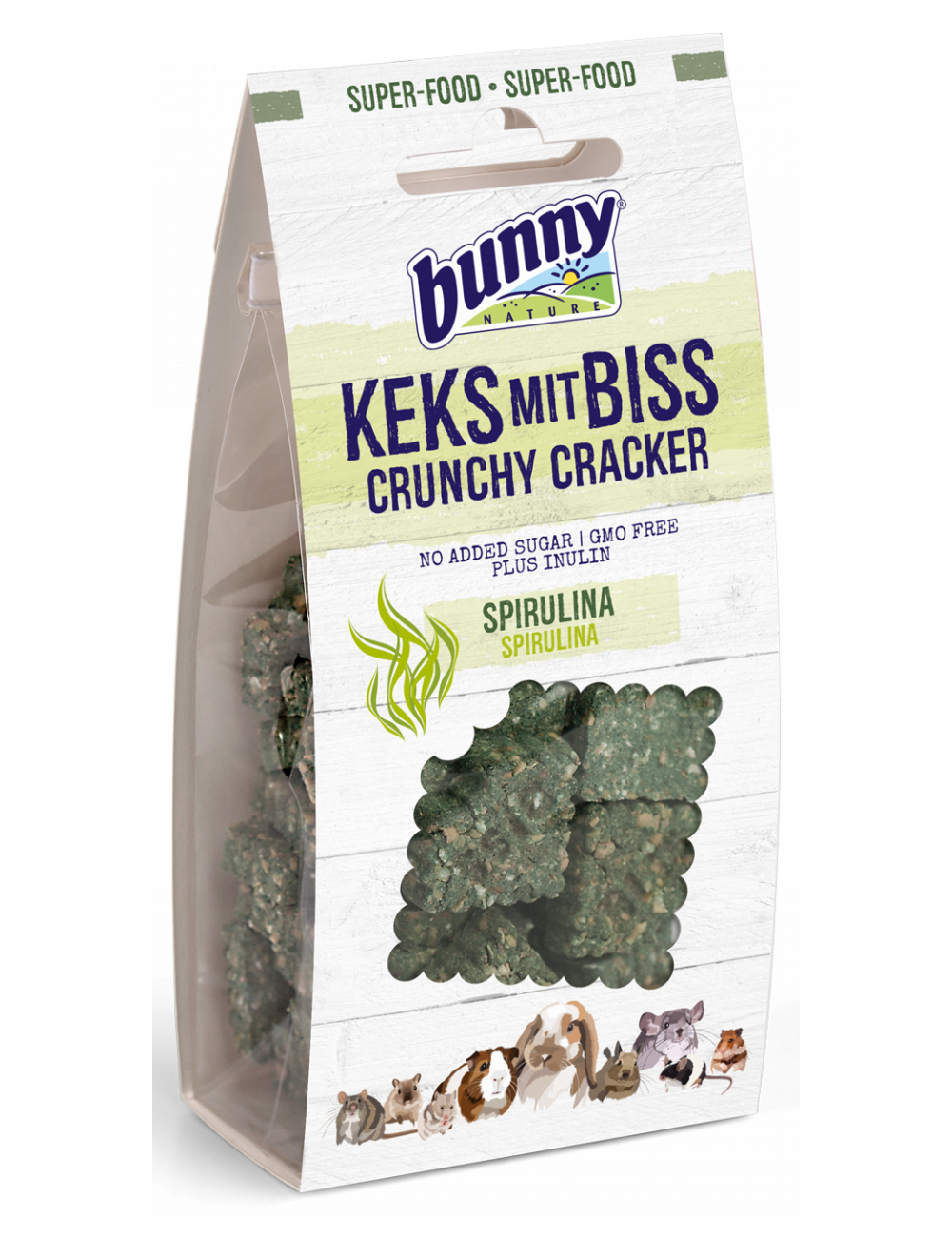 Stellen Sie Ihren pelzigen Freunden den Crunchy Cracker mit Spirulina von Bunny Nature vor. Diese knusprigen Leckereien sind nicht nur unwiderstehlich, sie stecken auch voller Köstlichkeiten. Mit ihrer spirulinareichen Zusammensetzung sind sie ein Konzentrat essentieller Nährstoffe . In jedem kleinen knusprigen Keks erwartet Ihr kleines Nagetier ein Fest voller Geschmack und Gesundheit. Es ist viel mehr als eine Wohltat, es ist eine Geste der Liebe für die eigene Vitalität und das tägliche Glück.