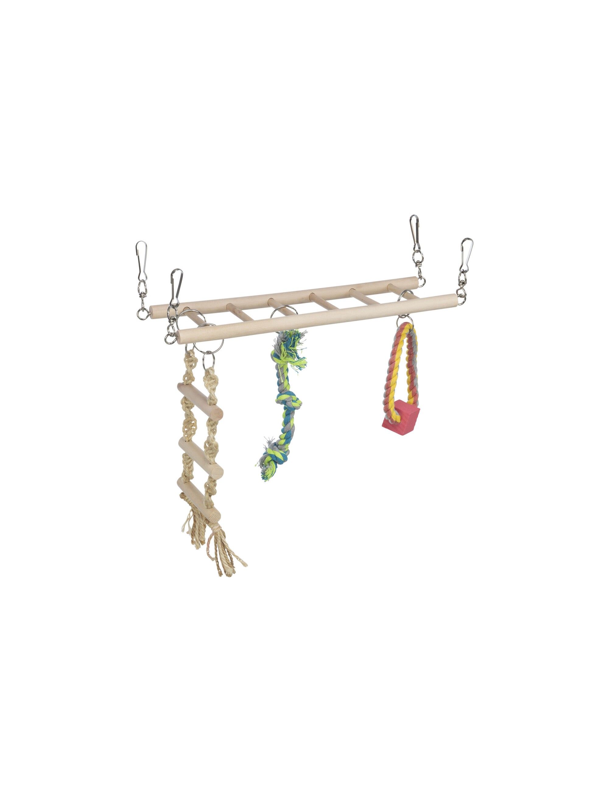 The Trixie Hanging Ladder is the dream playground for your little rodent! With its wooden ladder and rope toys , this accessory promises fun and exercise. Designed for safety and entertainment, it offers various activities , such as a cotton ring with wooden block and a rope game. Available in two sizes, it is ideal for mice, hamsters, gerbils, rats and ferrets.
