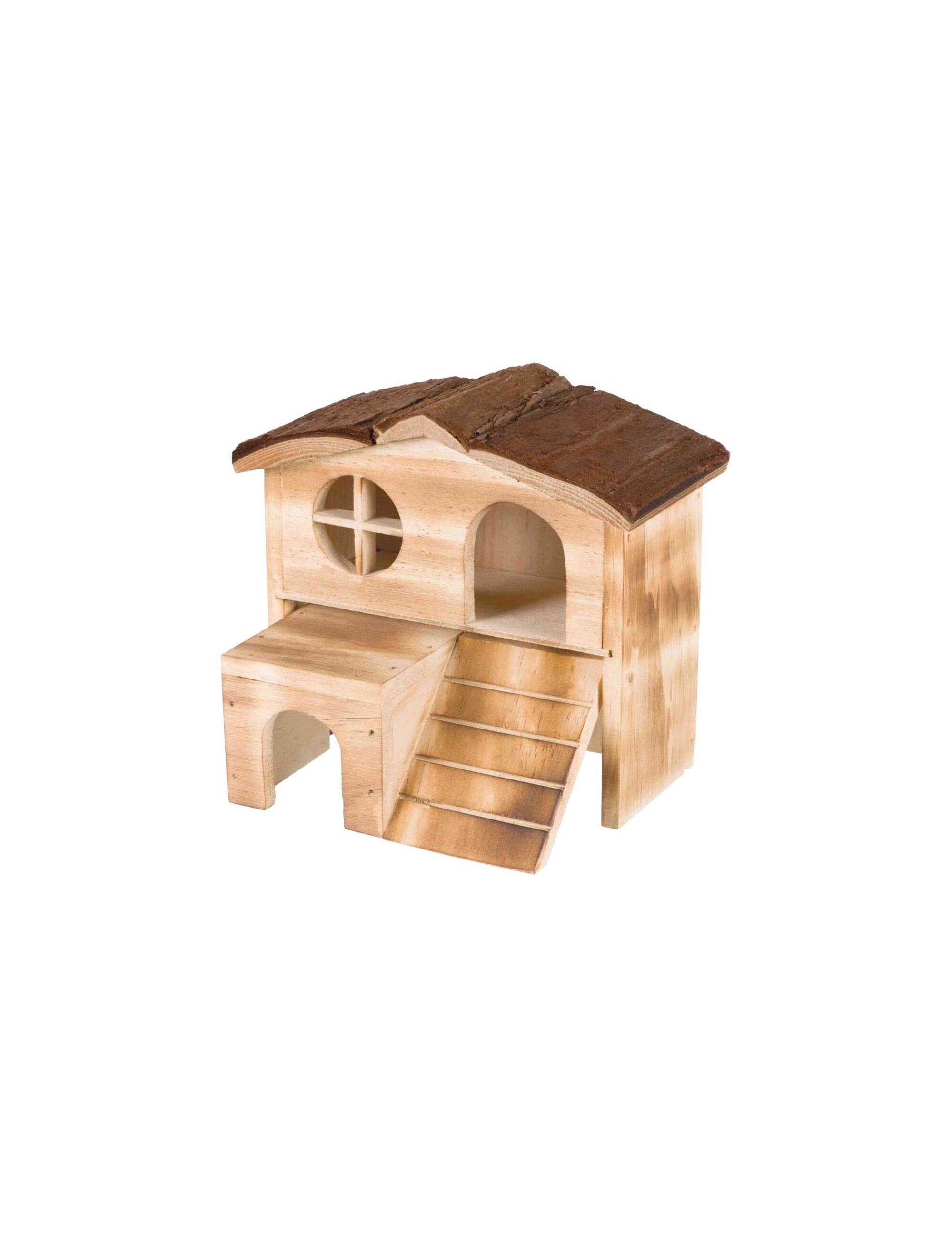 La Casa “Kasja” , un dúplex de madera flameada diseñado para ratones , combina estética y funcionalidad. Con dos plantas conectadas por una rampa , ofrece un generoso espacio para la observación y el descanso. Su amplia apertura y su ojo de buey permiten que su roedor se relaje mientras observa su entorno. Fabricada con madera sin resinas tóxicas y pegamentos no nocivos , la Casa “Kasja” garantiza un hábitat sano y seguro para tu pequeño compañero.