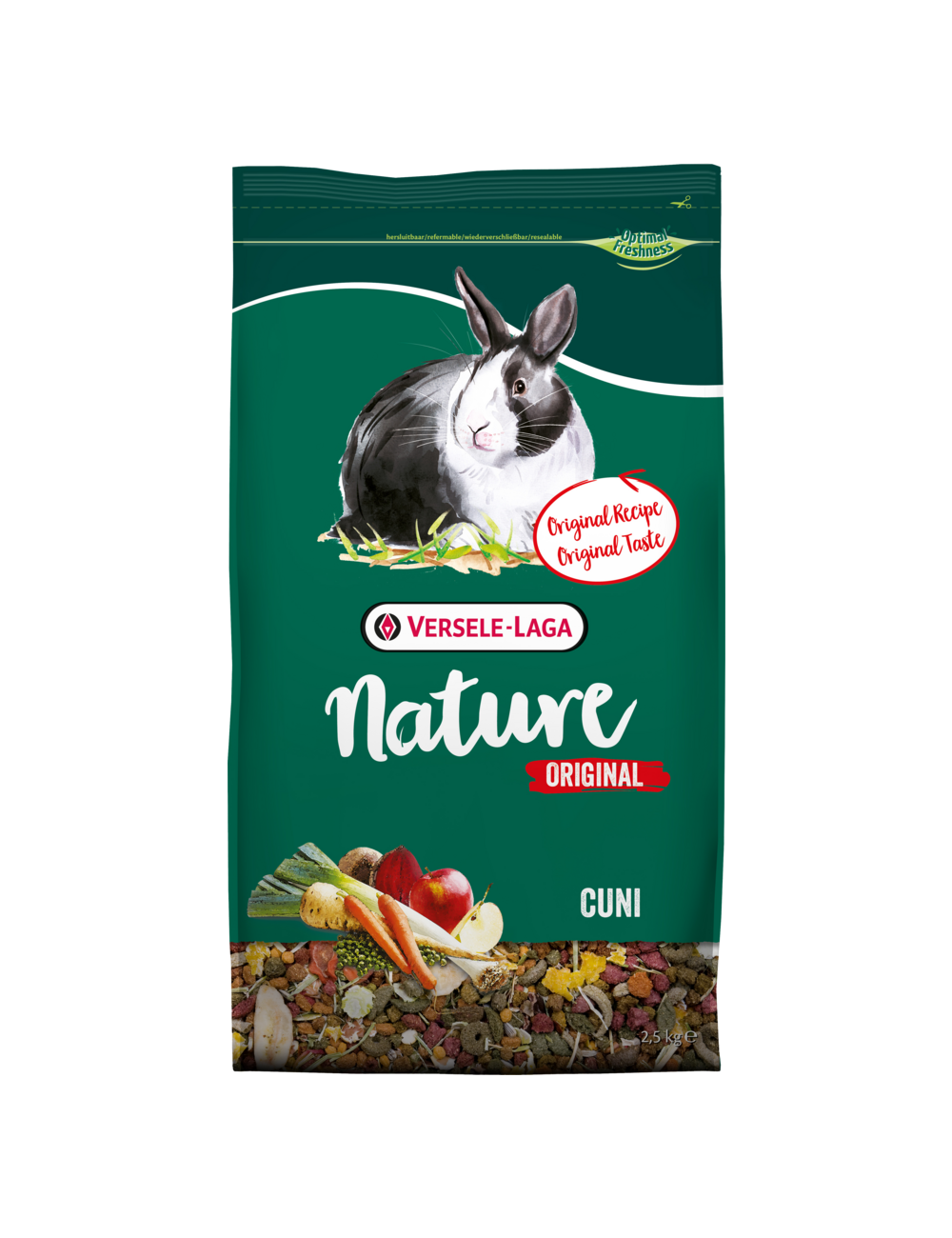 La gama Versele-Laga Nature encarna calidad y variedad. Regálale a tu conejo un auténtico capricho, lleno de texturas, sabores y aromas naturales. Con Nature Original Cuni tienes la seguridad de brindarle alimentos de la más alta calidad para su mayor satisfacción.