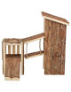 El área de juegos Trixie ofrece a tu pequeño compañero un espacio completo y natural para trepar, explorar y descansar. Diseñada en madera de corteza , combina un práctico comedor , una acogedora zona de descanso y un puente colgante para estimular la actividad sin estrés. Diseñada para hámsteres enanos y ratones , su estructura estable y sus cuidados acabados promueven un entorno reconfortante y enriquecedor. Sus compactas dimensiones de 32 × 19 × 29 cm se adaptan fácilmente a la mayoría de los hábitats, a la vez que multiplican los escondites y recorridos. Un área de juegos estética, segura y de fácil mantenimiento, perfecta para fomentar el bienestar y la curiosidad de tu pequeño roedor a diario.