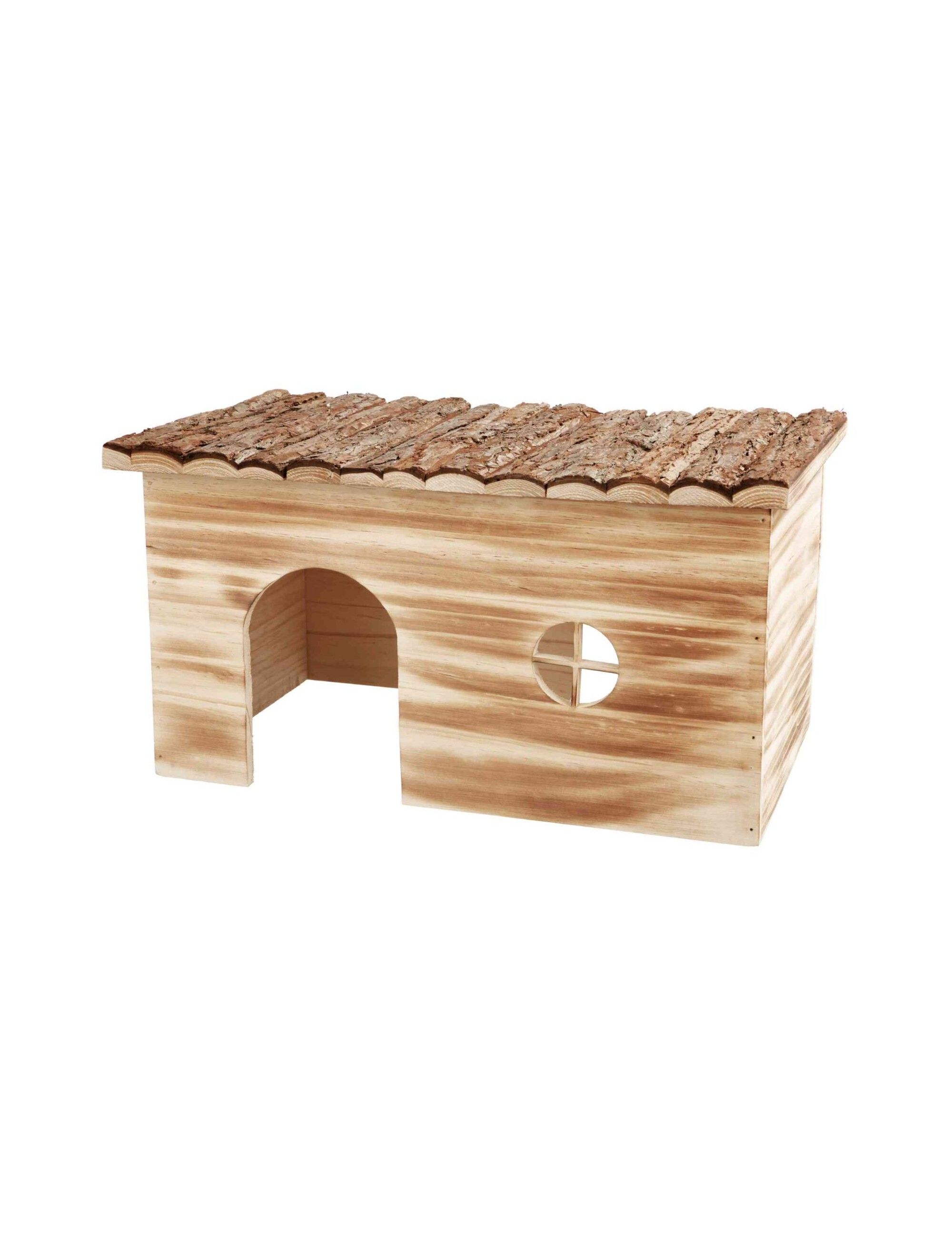 Dale a tu conejo o cobaya un espacio encantado con la casa "Grete". Especialmente diseñada para integrarse armoniosamente en su espacio vital, esta casa de madera ofrece un acogedor refugio para unas tranquilas siestas. Con su techo plano que sirve como plataforma de descanso , también ofrece un punto de vista elevado para monitorear su territorio. Elaborado con mimo, está libre de resina tóxica , garantizando la salud y el bienestar de tu mascota.