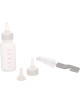 Parce que chaque animal a ses préférences, ce set comprend 3 tétines souples à percer selon le débit souhaité. Elles se fixent facilement et se changent dès qu’elles s’usent. Une brosse de nettoyage fine est aussi incluse pour aller chercher les résidus jusque dans les recoins de la tétine ou du col de la bouteille. Le nettoyage est simple : un peu d’eau tiède, du savon, on laisse sécher, et c’est reparti pour un prochain repas.
