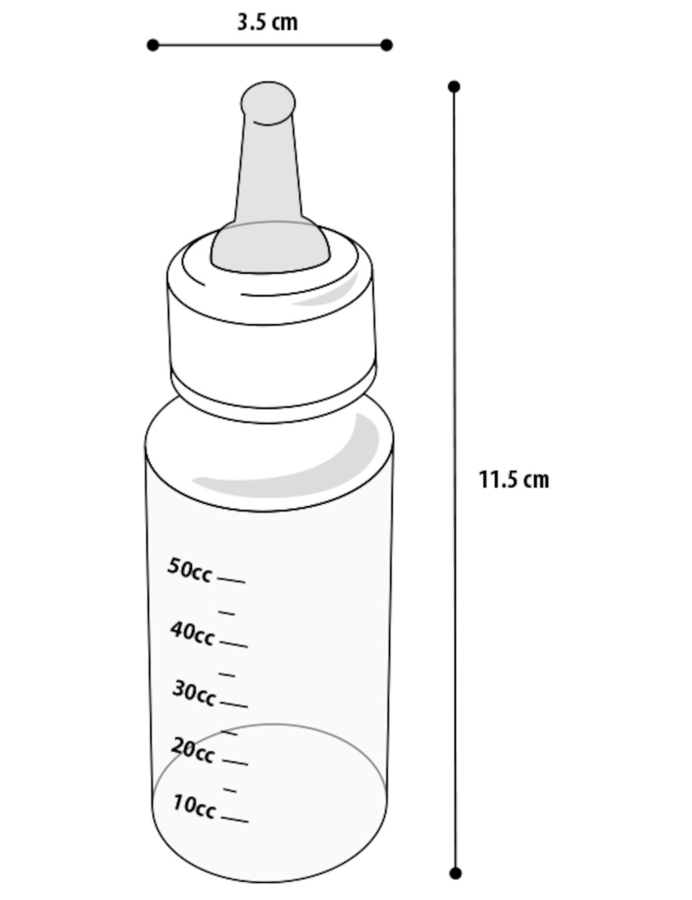 Ce biberon Flamingo de 50 ml est conçu pour les petites bêtes à nourrir avec délicatesse : chiots nouveau-nés, chatons orphelins ou rongeurs encore fragiles. Sa graduation précise en cc et oz sur le flacon permet de suivre facilement la quantité de lait distribuée. Ultra léger (seulement 10 g), il tient parfaitement en main et offre une prise confortable même en pleine nuit.