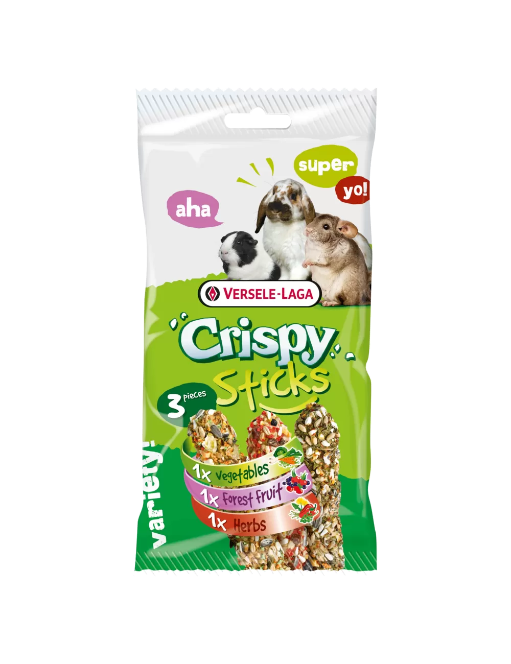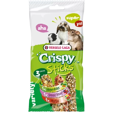 Les Crispy Mega Sticks Herbivores - Pack Triple Variety de Versele-Laga sont la friandise idéale pour les lapins et autres herbivores. Ces délicieux snacks cuits au four sont spécialement conçus pour satisfaire les papilles exigeantes de vos petits compagnons à fourrure. Chaque pack comprend trois saveurs irrésistibles : légumes, fruits des bois et fines herbes.