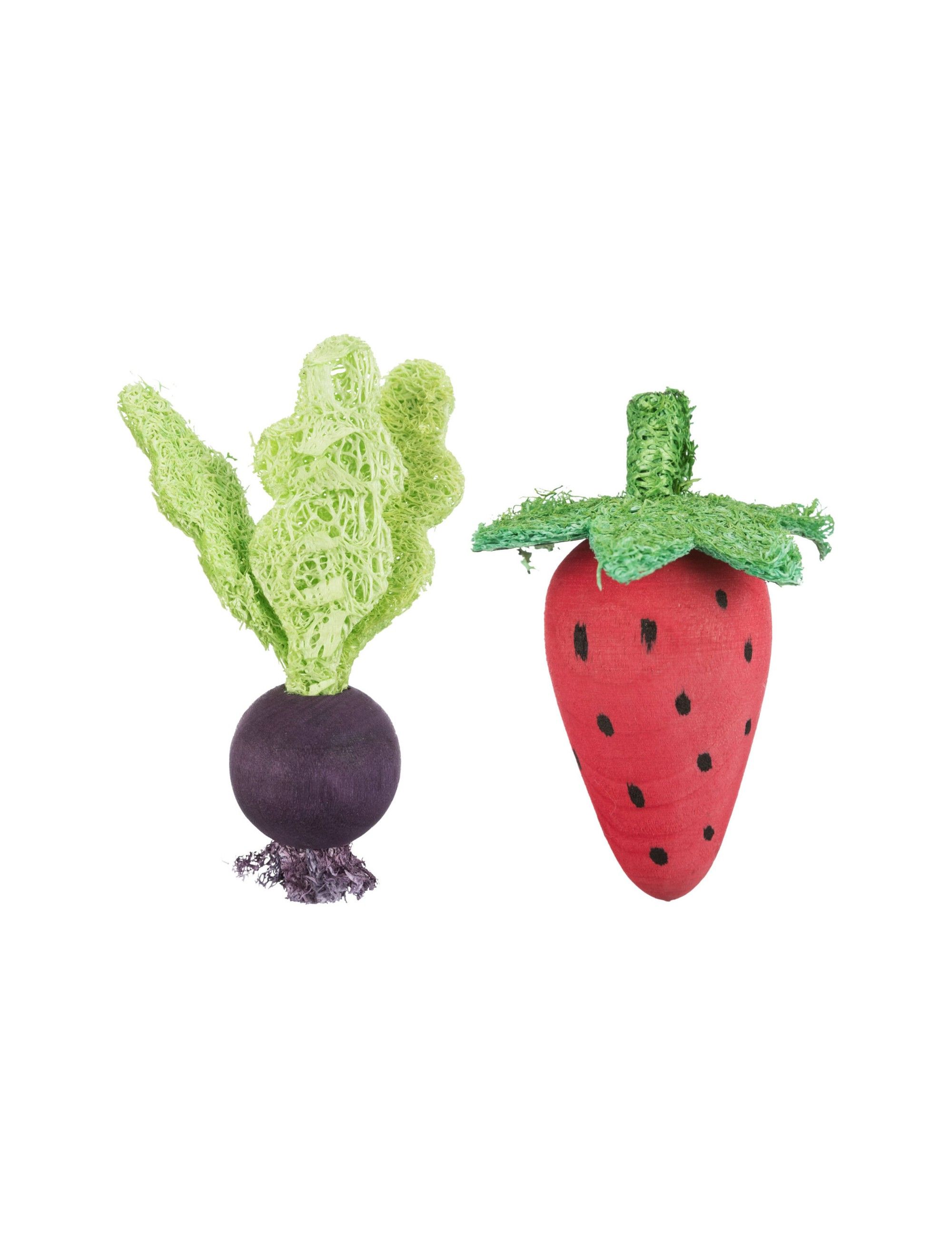 Le Set de Jouets TRIXIE en Bois et Luffa, aux amusantes formes de fraise et de betterave, est le divertissement parfait pour votre lapin ou rongeur. Conçu spécialement pour les lapins et cochons d'Inde, ce duo de jouets de 6 et 9 cm stimule l'usure naturelle des petites dents. Fabriqués avec du bois et du luffa, des matériaux 100% naturels, ils offrent une mastication saine et divertissante, tout en assurant une santé bucco-dentaire optimale.