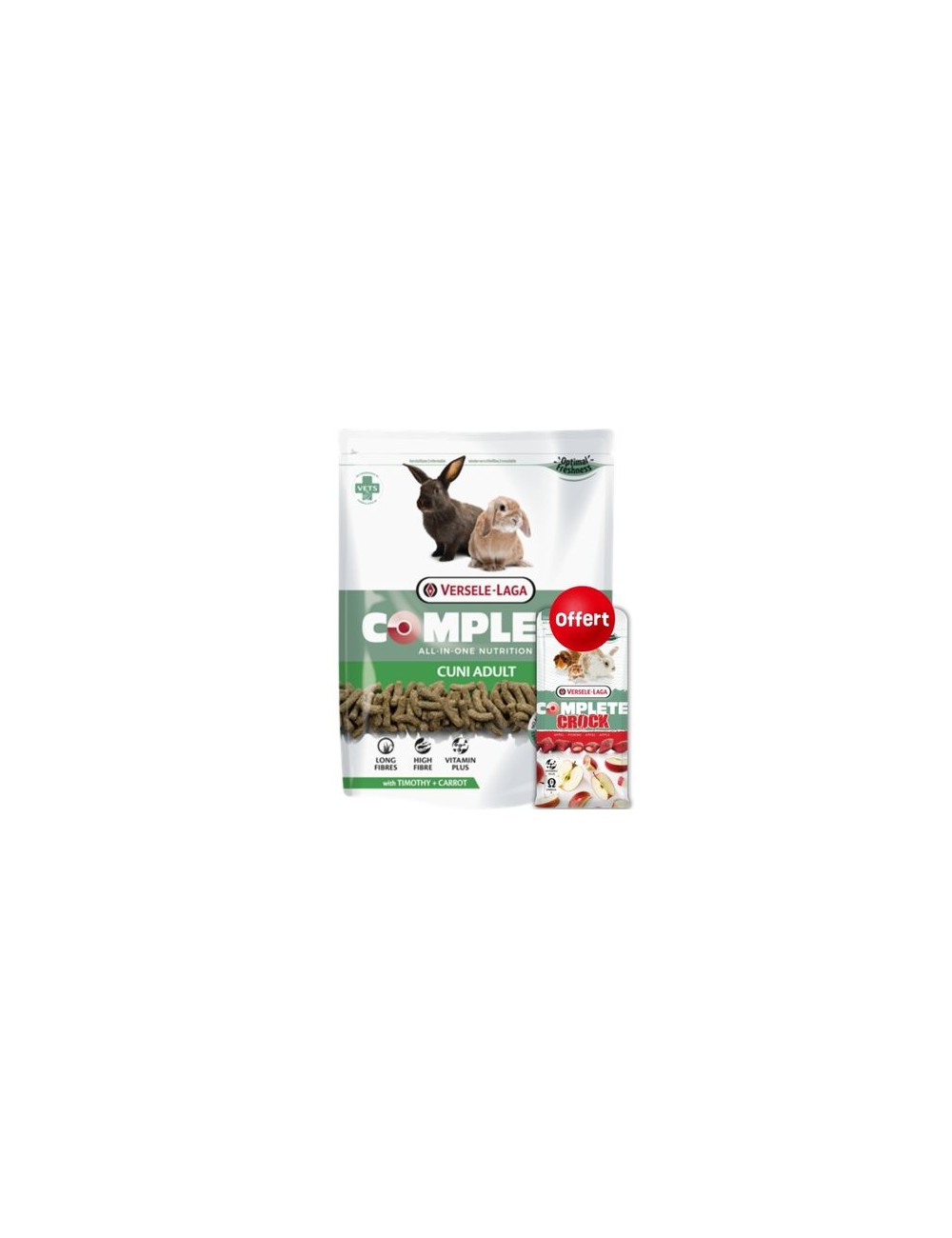 Uno dei principali vantaggi di VERSELE-LAGA - CUNI ADULT Complete è il suo alto contenuto di fibre e fieno di fleolo . Le fibre lunghe favoriscono una buona digestione, mentre la struttura granulare garantisce una sufficiente usura dei denti. Il tuo coniglio rimarrà in ottima forma e avrà sempre un sorriso radioso!