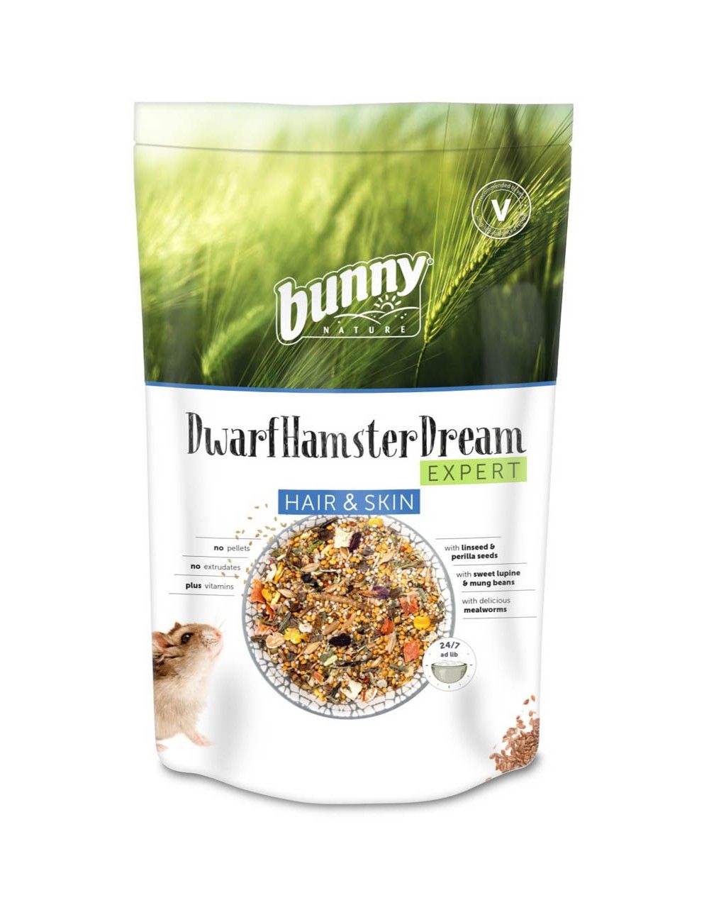 Criceto Nano Dream Expert - Skin & Fur di BUNNY NATURE è un cocktail di benessere. Grazie alla sua ricetta unica, ricca di acidi grassi insaturi provenienti da semi di lino e perilla , questo pasto garantisce pelo lucido e pelle sana . Aggiungi aminoacidi essenziali da lupini dolci e fagioli mung e avrai un vello forte e un rinnovamento cellulare competitivo. Niente pellet, solo vitamine in abbondanza per una ricetta accettata al 100% !