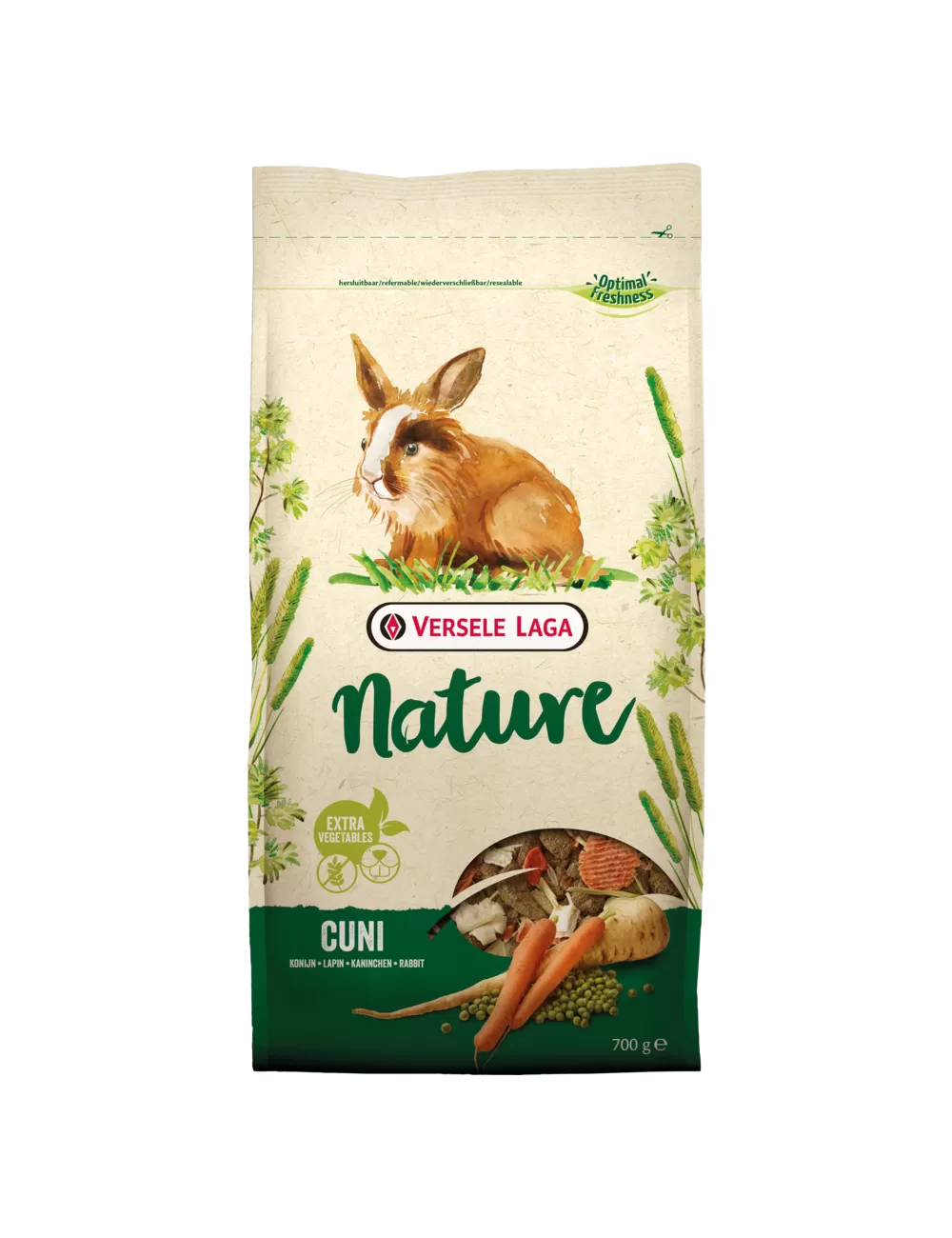 I cereali a volte possono disturbare la digestione dei conigli. Versele-Laga Nature CUNI è formulato senza cereali, garantendo così una digestione ottimale al tuo piccolo compagno.