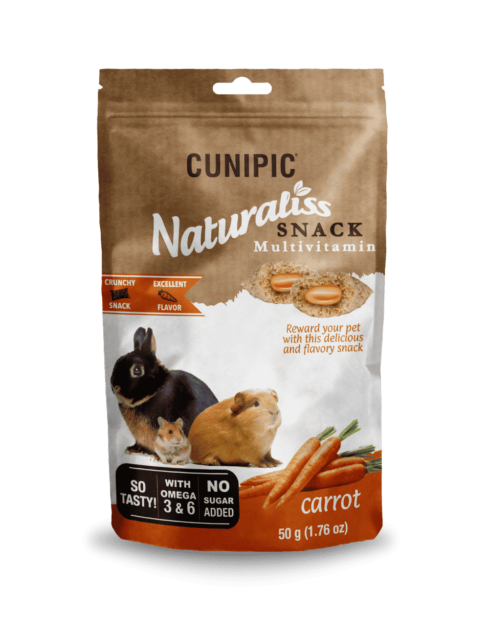 Regala al tuo piccolo compagno lo snack multivitaminico alla carota CUNIPIC Naturaliss. Croccante fuori e cremoso dentro grazie alla sua crema all'estratto di carota, delizierà il palato del tuo roditore ad ogni boccone.