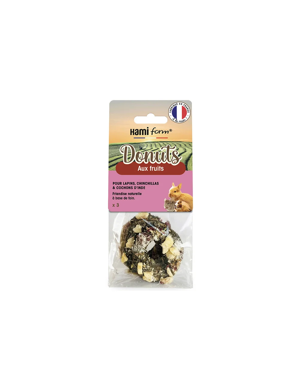 Le ciambelle alla frutta Hamiform sono prodotte in Francia, con una rigorosa selezione degli ingredienti. Hamiform si impegna a offrire prodotti naturali, senza conservanti o additivi artificiali, per garantire la salute e la soddisfazione dei piccoli animali. Scegliendo queste ciambelle, offrirai al tuo compagno una coccola sana, frutto del know-how francese.