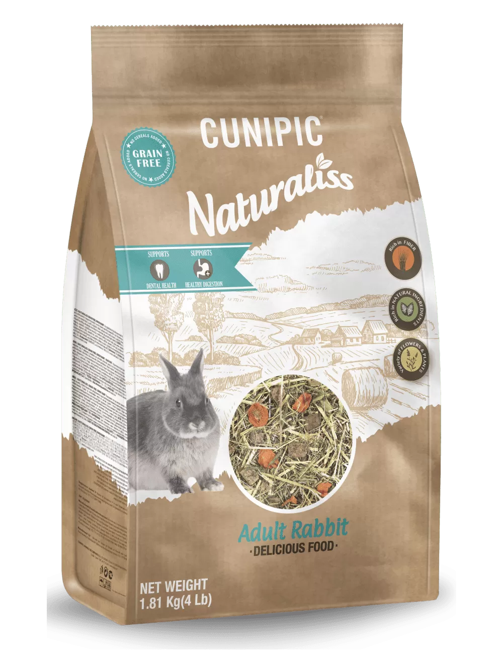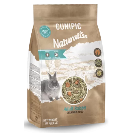 Naturaliss Adult Rabbit é uma mistura nutritiva e 100% natural para coelhos adultos. Cuidadosamente elaborado para fornecer todos os nutrientes essenciais, este alimento garante um crescimento saudável e robusto ao seu pequeno companheiro. Graças à rica diversidade de plantas ( rabo-de-gato , feno de capim, urtiga, equinácea), cada mordida é um deleite para o seu animal de estimação, evitando problemas gastrointestinais.