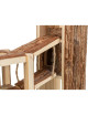 Feita inteiramente de madeira de casca de árvore , esta área de recreação oferece uma textura natural que estimula a exploração e a mastigação saudáveis . Os relevos e as superfícies variadas estimulam a coordenação motora fina, enquanto as áreas escondidas satisfazem a necessidade instintiva de se esconder e se sentir seguro . O resultado: um espaço multifuncional que mantém seu roedor ocupado de forma inteligente e reduz o tédio.