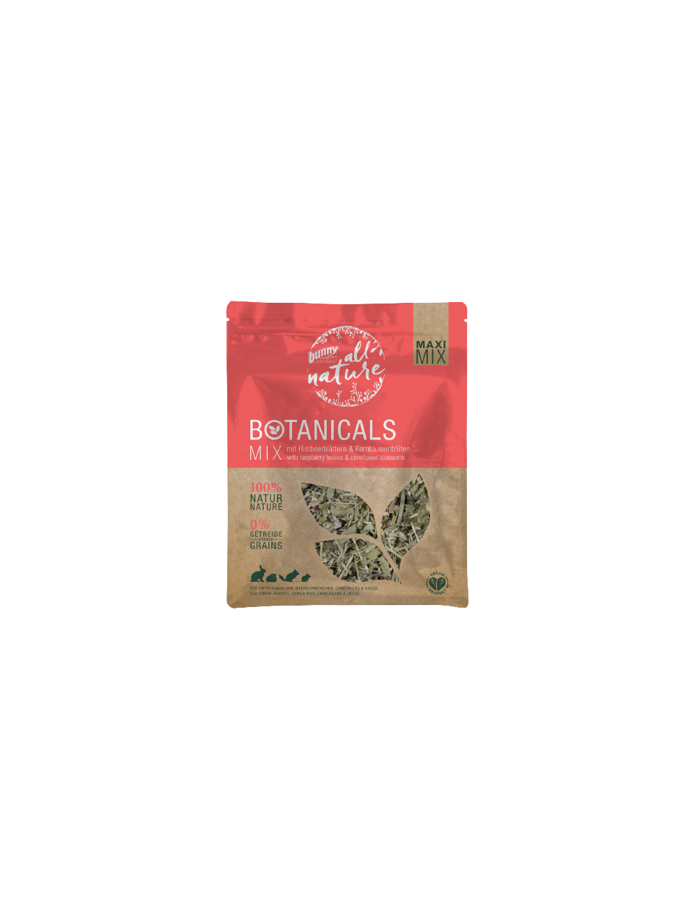 BOTANICALS Maxi Mix é mais do que uma guloseima. É uma fonte completa de nutrição que complementa idealmente a dieta dos seus coelhos e roedores. As folhas de framboesa e as flores de mirtilo são cuidadosamente selecionadas para atender às necessidades dietéticas específicas dos herbívoros, garantindo saúde ideal e energia ilimitada.