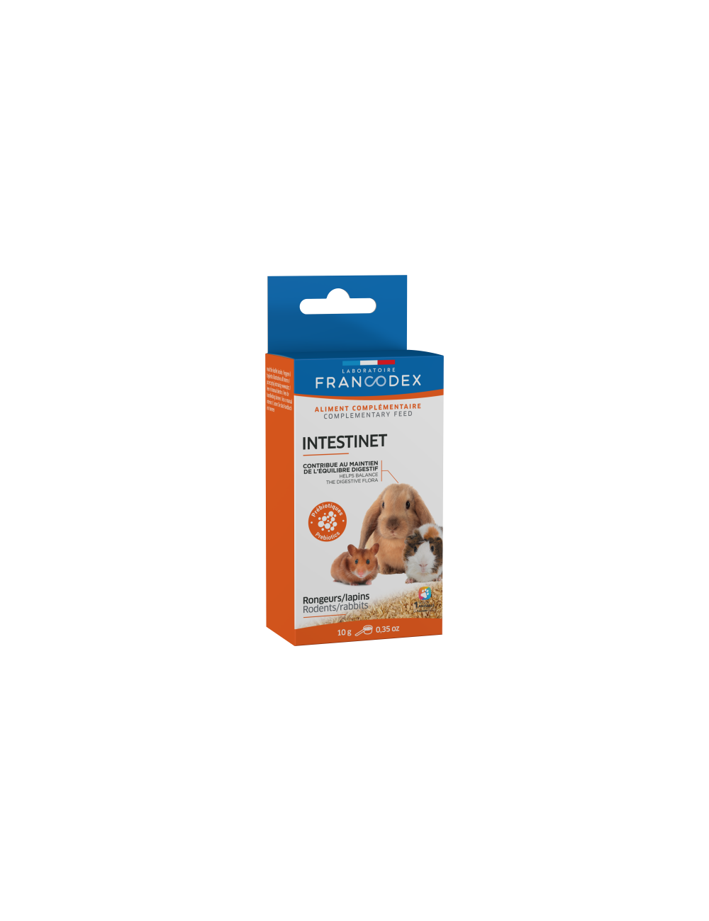 INTESTINET FRANCODEX é enriquecido com mananoligossacarídeos e ?-glucanos, componentes essenciais para a estabilização da flora intestinal. Estes princípios activos ajudam a estimular a flora benéfica e a inibir a adesão de bactérias patogénicas, garantindo assim uma digestão óptima e prevenindo eficazmente desequilíbrios que podem levar a doenças graves.
